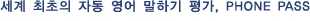 PhonePass ½ÃÇèÀº ±¹Á¦°øÀÎ ¿µ¾î ¸»ÇÏ±â Æò°¡ÀÔ´Ï´Ù. ÀÌ ½ÃÇèÀº ÇöÀç Çѱ¹»Ó¸¸ ¾Æ´Ï¶ó ¹Ì±¹, ÀϺ», Áß±¹, ³×´ú¶õµå¸¦ ºñ·ÔÇÑ ¼¼°è