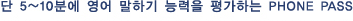 PhonePass ½ÃÇèÀº °¡Àå °´°üÀûÀÎ ¿µ¾î ¸»ÇÏ±â Æò°¡ÀÔ´Ï´Ù. ÇöÀç »ç¿ëµÇ°í ÀÖ´Â ´ëºÎºÐÀÇ ¿µ¾î ¸»ÇÏ±â Æò°¡´Â